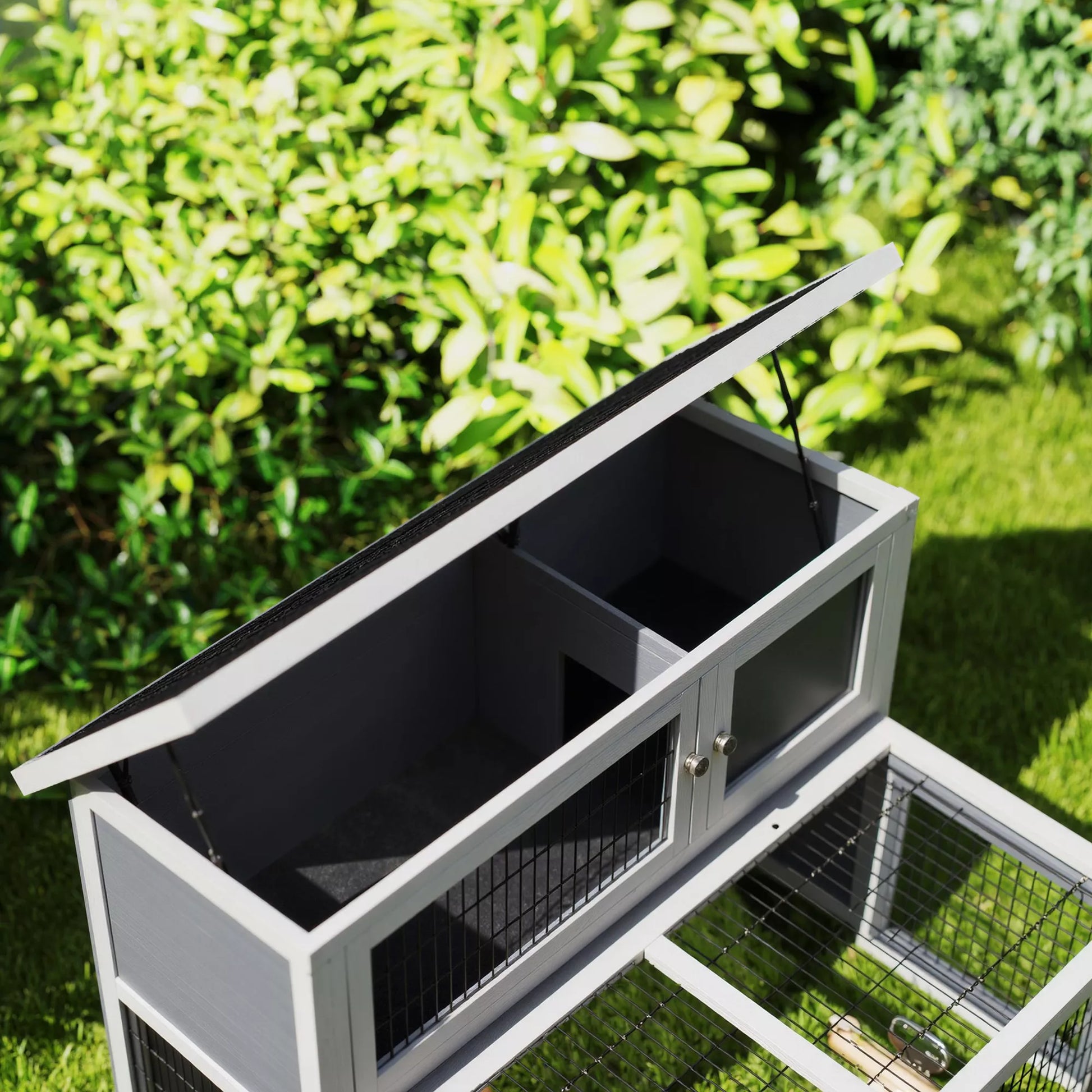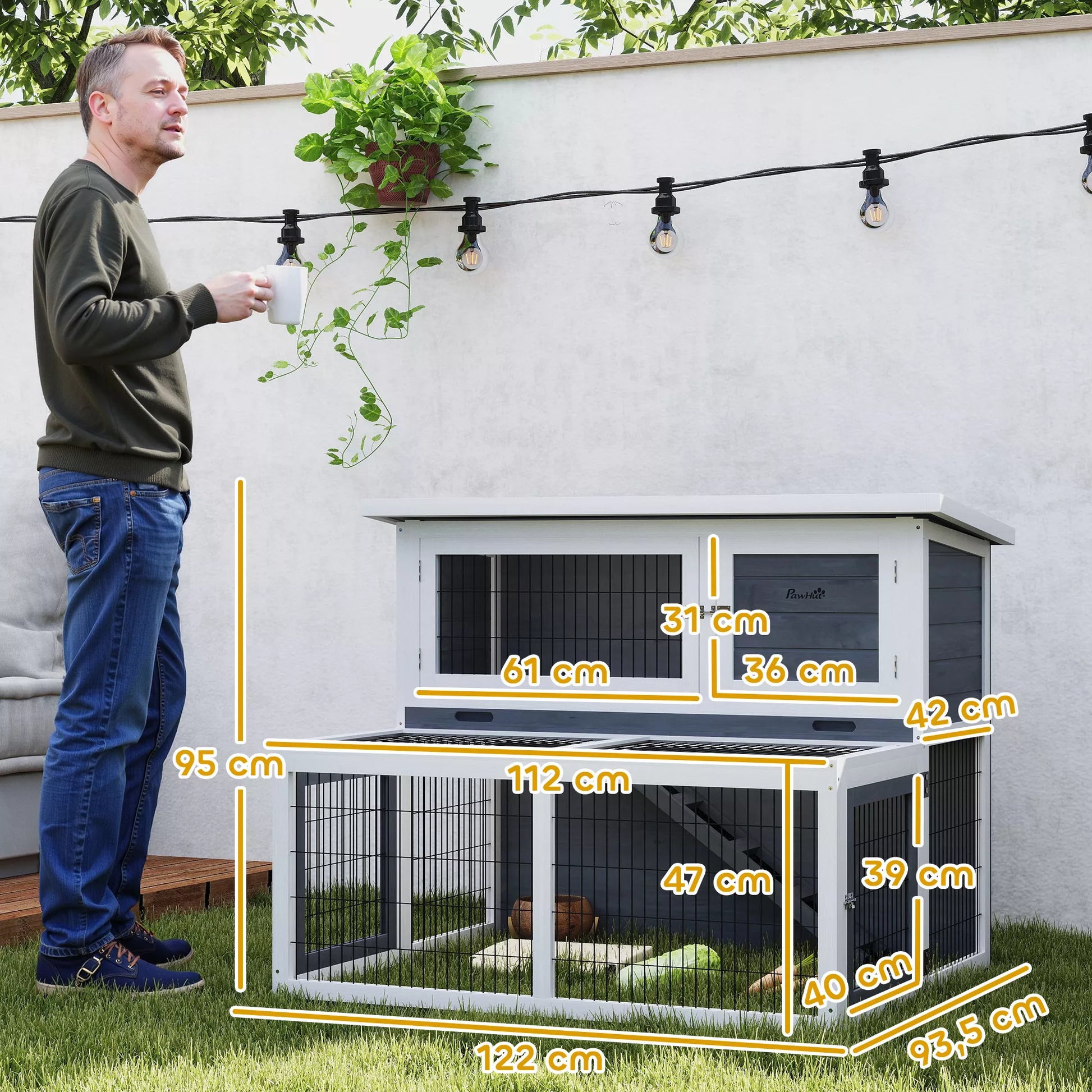 Triušidė 2 aukštų su atlenkiamu stogu, triušių namelis iš medžio masyvo, atsparus žiemai, dviejų aukštų namelis 122x95x93,5 cm Pilka