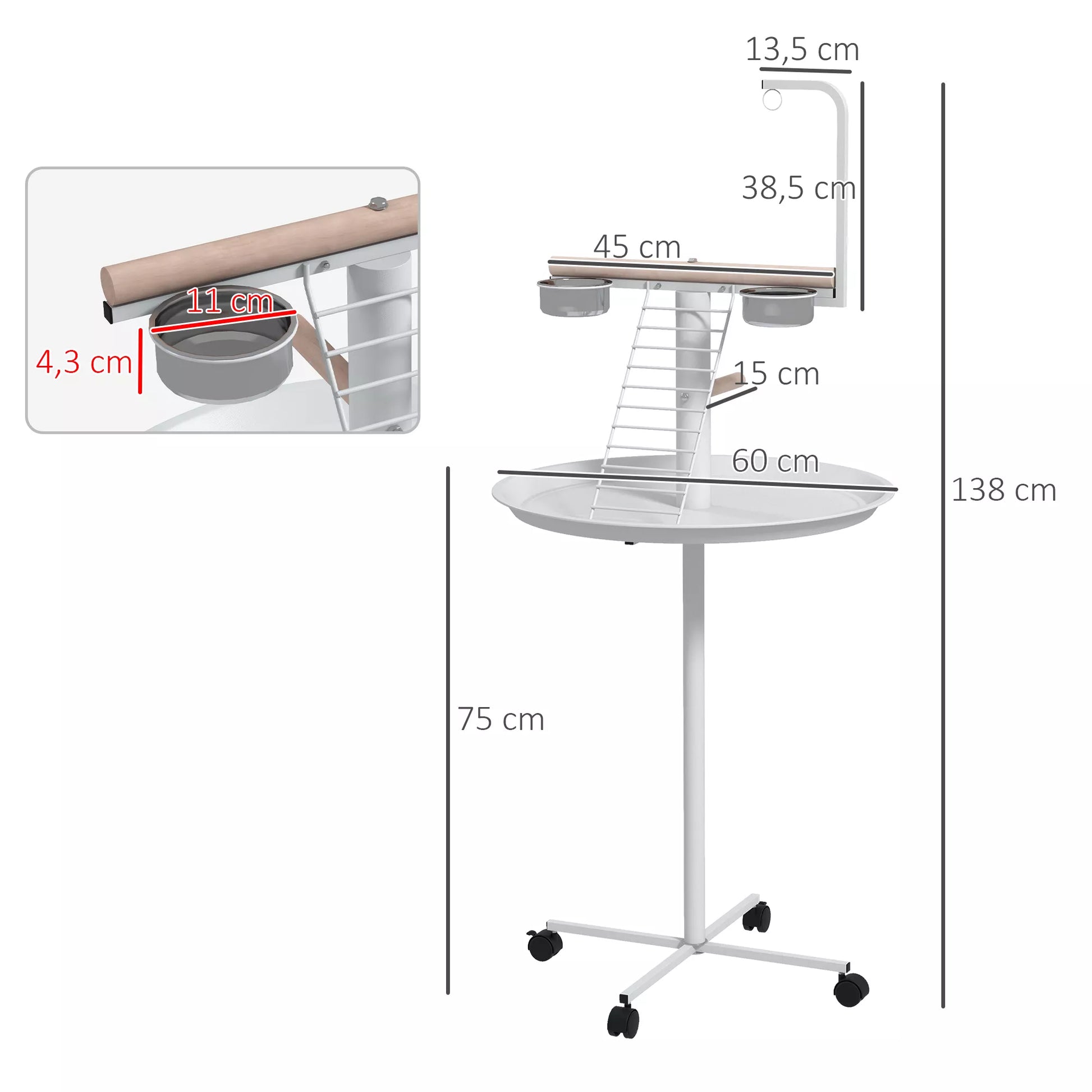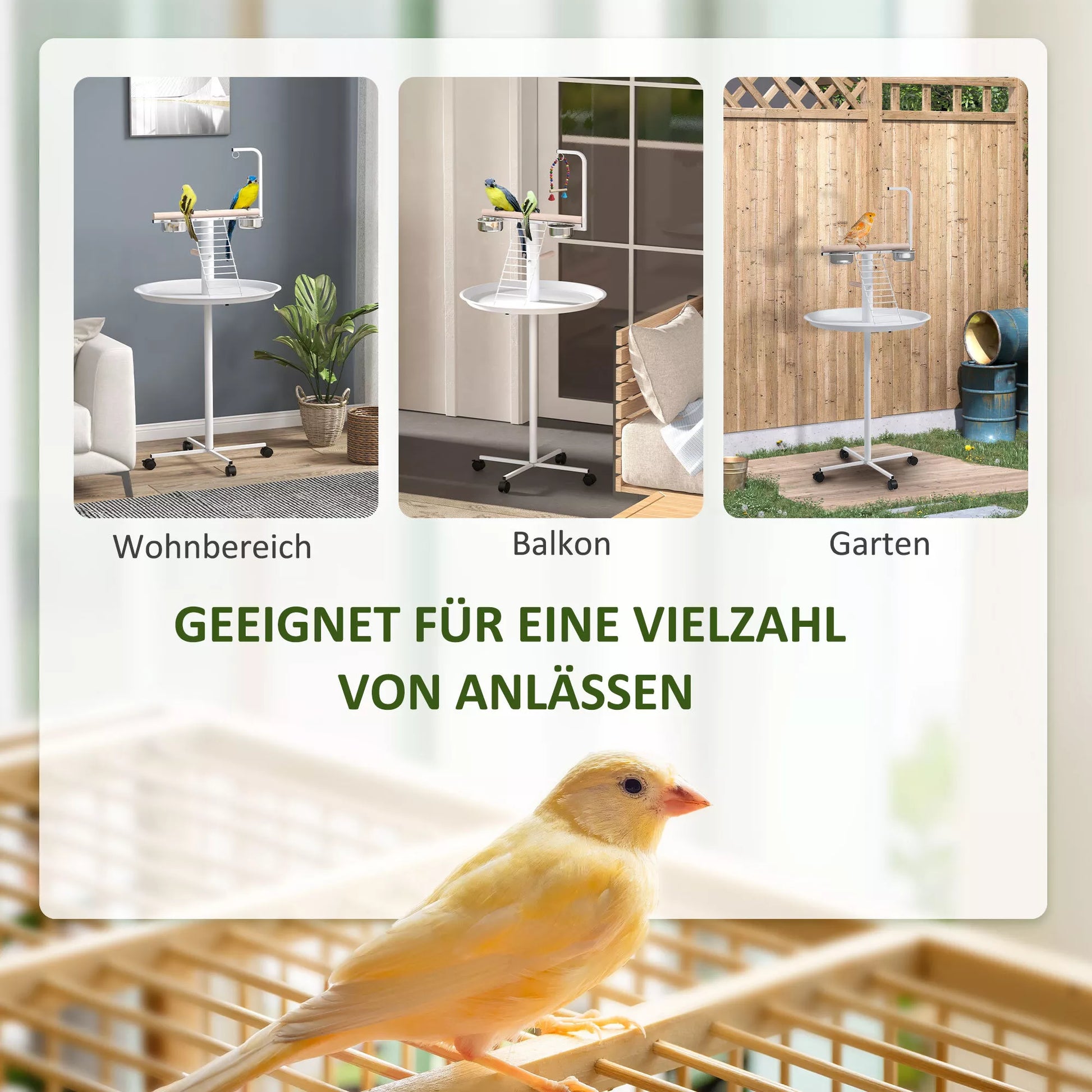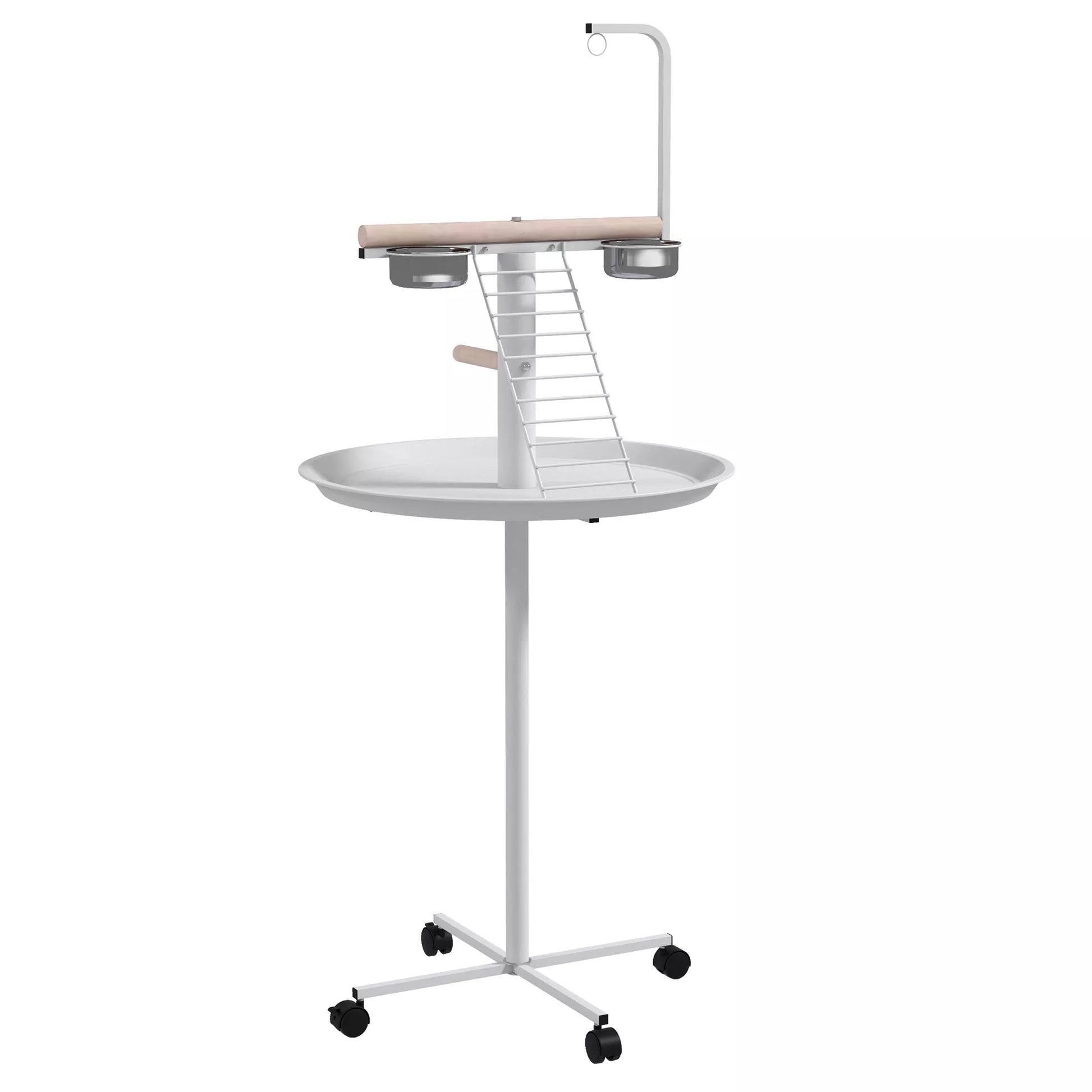 Suteikite savo paukščiui žaidimų ir poilsio vietą su šiuo paukščių staliuku. Su keturiais ratukais, iš kurių du su stabdžiais, jį lengva perkelti tarp kambarių arba iš vidaus į lauką. Su sėdimuoju pagaliuku, kopėtėlėmis ir sūpynėmis, taip pat 2 nerūdijančio plieno dubenėliais, jis atitinka kasdienius paukščio poreikius. Pagamintas iš plieno ir medžio, šis paukščių staliukas skirtas naudoti kasdien. Padarykite savo augintinio gyvenimą spalvingesnį su !
