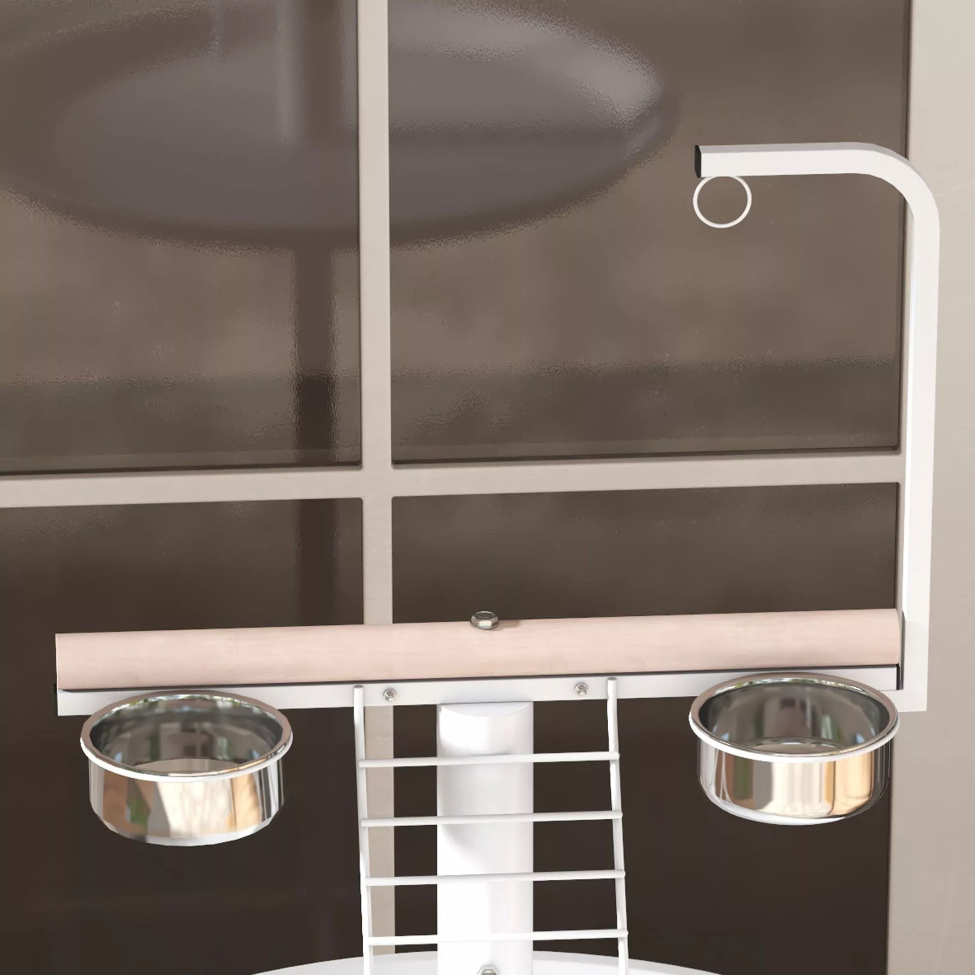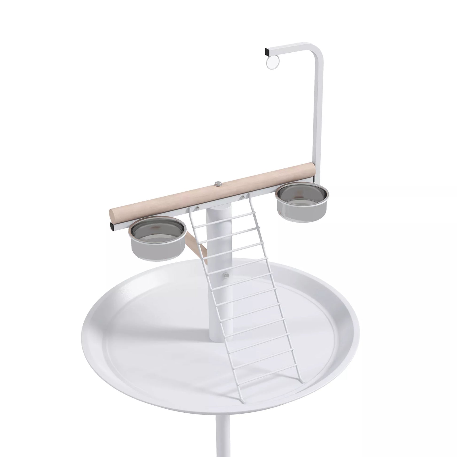 Tupėklynas papūgoms, 1 kopėtėlės, 1 sūpynės, 2 lesyklėlės, 60 x 60 x 138 cm, Balta + Natūrali