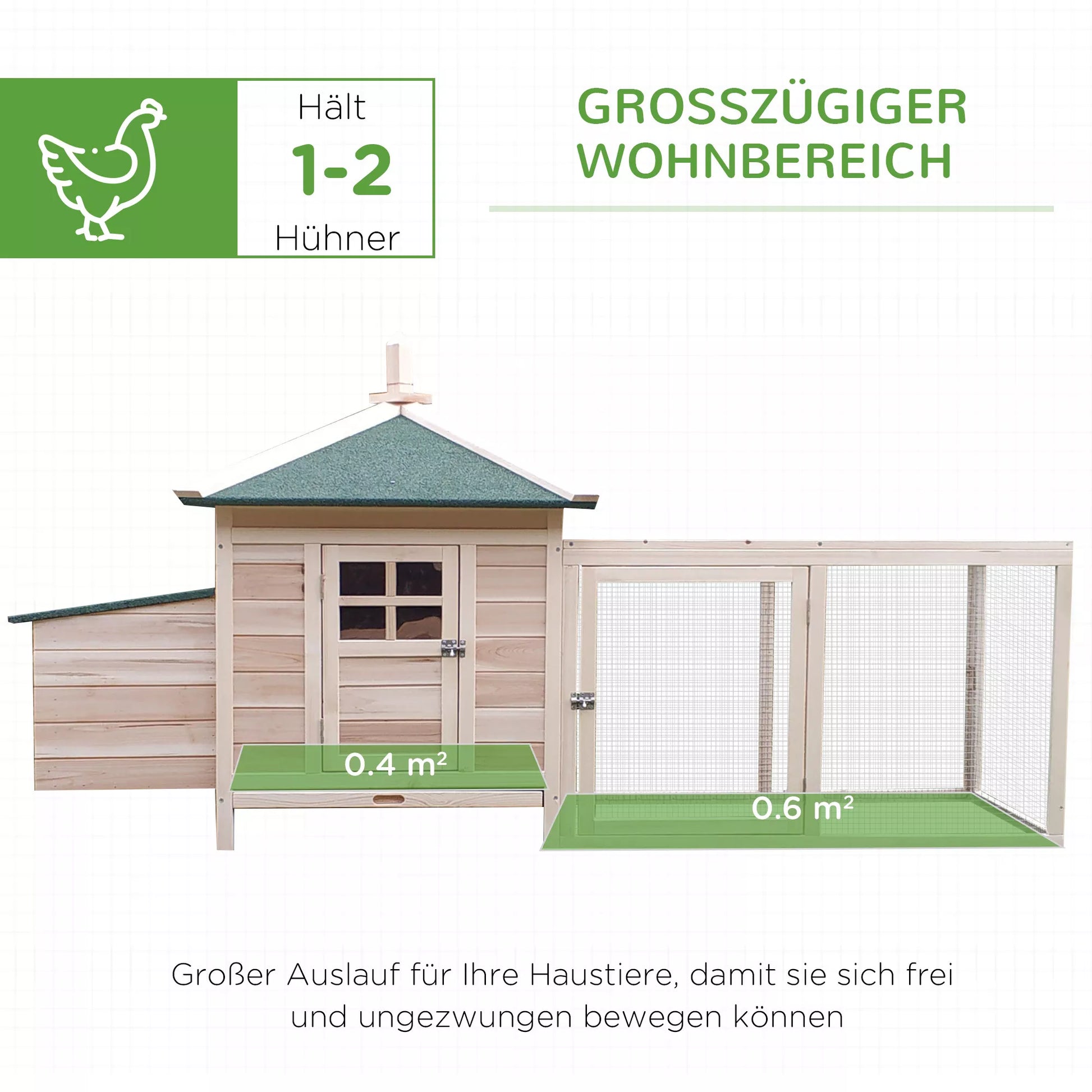 Vištidė vištaitėms 196 x 76 x 97 cm Vištidė su lizdelių dėže, lauko gardeliu, sėdynės strypeliu, mediniu smulkių gyvūnų aptvaru, natūrali