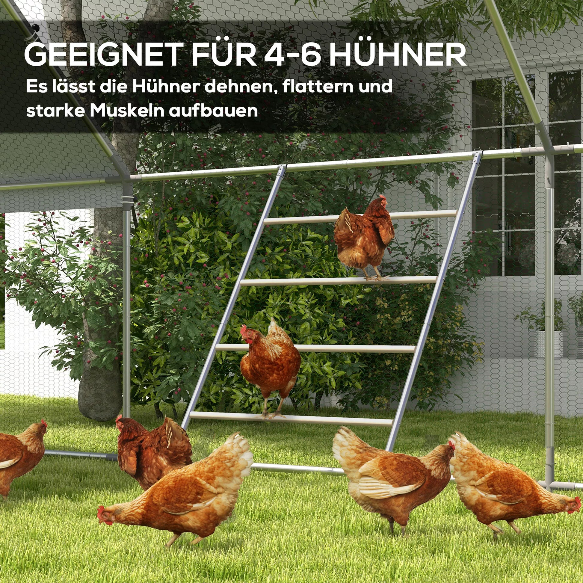 Dabar ir jūsų vištos gali lipti (karjeros) laiptais – su mūsų laipteliais! Pagaminti iš tvirto cinkuoto plieno vamzdžių ir aukštos kokybės medinių skersinių, šie novatoriški sėdimieji laipteliai siūlo keturias skirtingo aukščio platformas. Jūsų vištoms patiks stebėti pasaulį iš viršaus ilsintis, besiprausiant ar tupinėjant. Sukurkite natūralią gyvenamąją aplinką, kuri skatina jūsų gyvūnų gerovę ir tuo pačiu užtikrina harmoningą tvarto klimatą.