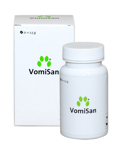 Vomisan- pašaro papildas šunims ir katėms. Ramina skrandžio gleivinę. Duoti skiriant bet kokį skausmą malšinantį vaistą ar antibiotiką. Tinka ilgalaikiam vartojimui. Specialus ingredientų kompleksas ramina skrandžio gleivinę ir apsaugo nuo medžiagų, kurios gali atakuoti ir sudirginti jautrią skrandžio sienelę.